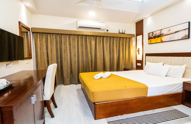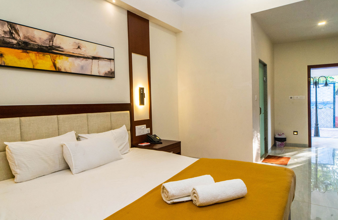 Grande Alpine – A Haven of Comfort and Affordable Luxury in Goa. Experience luxury living and relax under the backdrop between the Vagator hills and sea adjoining the Anjuna beach. Embark on a journey to a tropical paradise where comfort and luxury seamlessly blend to create a memorable experience at Grande Alpine. A stunning 6-bedroom resort consisting of luxury and premium pool view rooms. What a lovely way to wake up to the morning sunrise in a true state of tropical chill. Say hello to the Goan sun at Grande Alpine with peace & tranquility. With just a short walking distance to Vagator’s famous Ozran Beach, our guests can escape the rigors of daily life and immerse themselves in a world of relaxation and rejuvenation. The towering coconut palms & lush greenery combined with the cool breeze, chirping of birds showcase tranquility at its best. Our stylish accommodations, sophisticated amenities and stunning surroundings provide the perfect backdrop for an unforgettable vacation. The rooms at Grande Alpine boast of a chic and luxury experience effortlessly blending with comfort, luxury and style.
